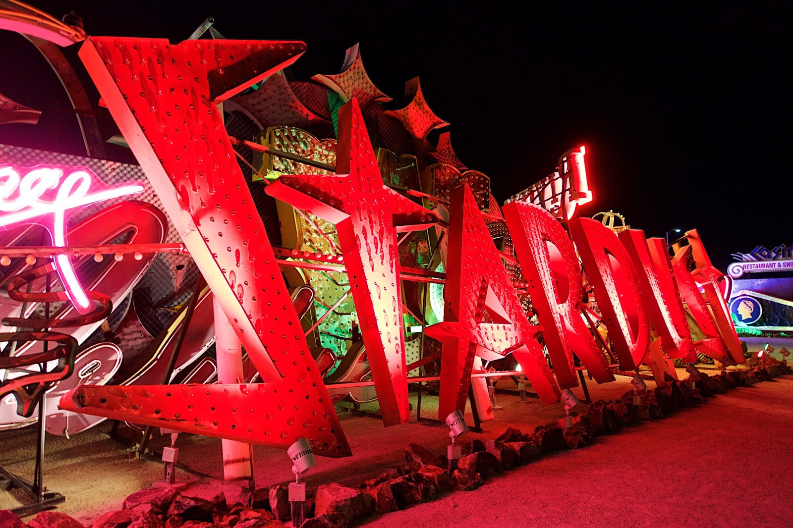 Stardust Casino sign, Neon Museum at night. - Picture of ... , כדי לעזור לך להתמצא ברחבי לאס וגאס, הנה שם העסק וכתובתו בשפה המקומית.