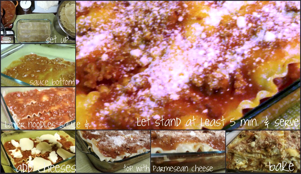 For the exact recipe and proportions of ingredients, go to easy meat lasagna recipe.